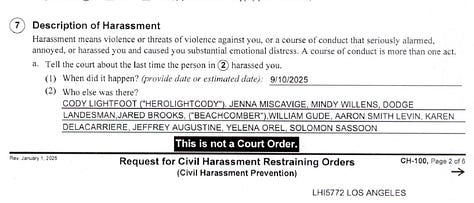 ZeroDarkTony’s restraining order petition looks less like protection than a tool to silence and harass victims.